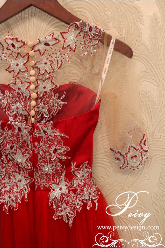 Red is never die, always be the favorite for the wedding, Ms. Na choose the red combine with silver for the night gown. Her mom is falling in love with big-bow at the center of the dress, create the contra opinion because it is not a common one. But since she has a proportional shape, we sure it will be nice and fit with her. Voila, the dress is like born to her :)